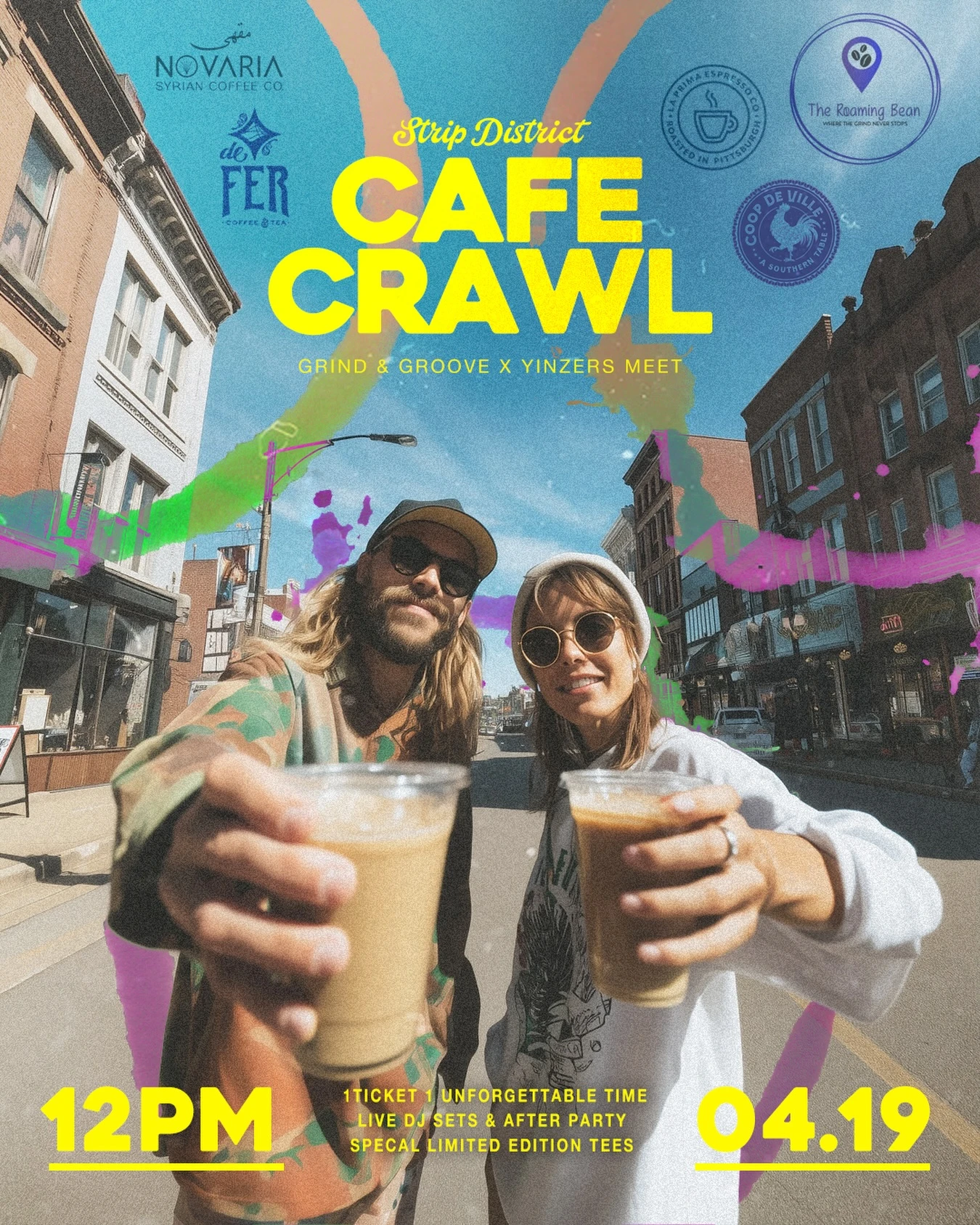 A daytime cafe crawl through Pittsburgh's Strip District featuring live DJ sets, an after party, and limited edition tees.