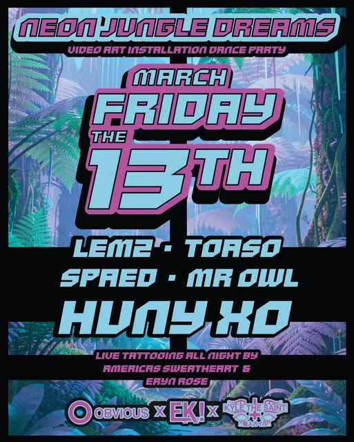 Video art installation dance party featuring Lemz, Toaso, Spaed, Mr Owl, and Huny XO.