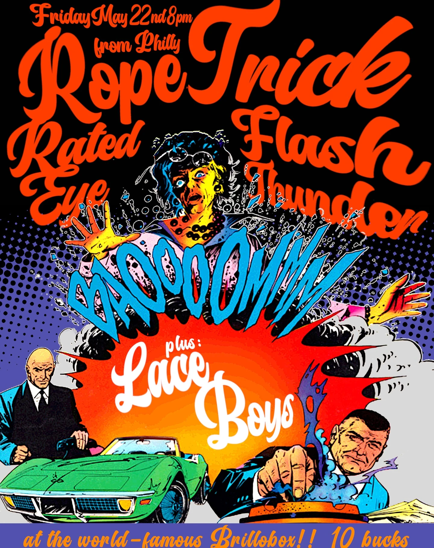 Philly's Rope Trick headlines a wild rock night at the Brillobox with Rated Eye, Flash Thunder, and Lace Boys.
