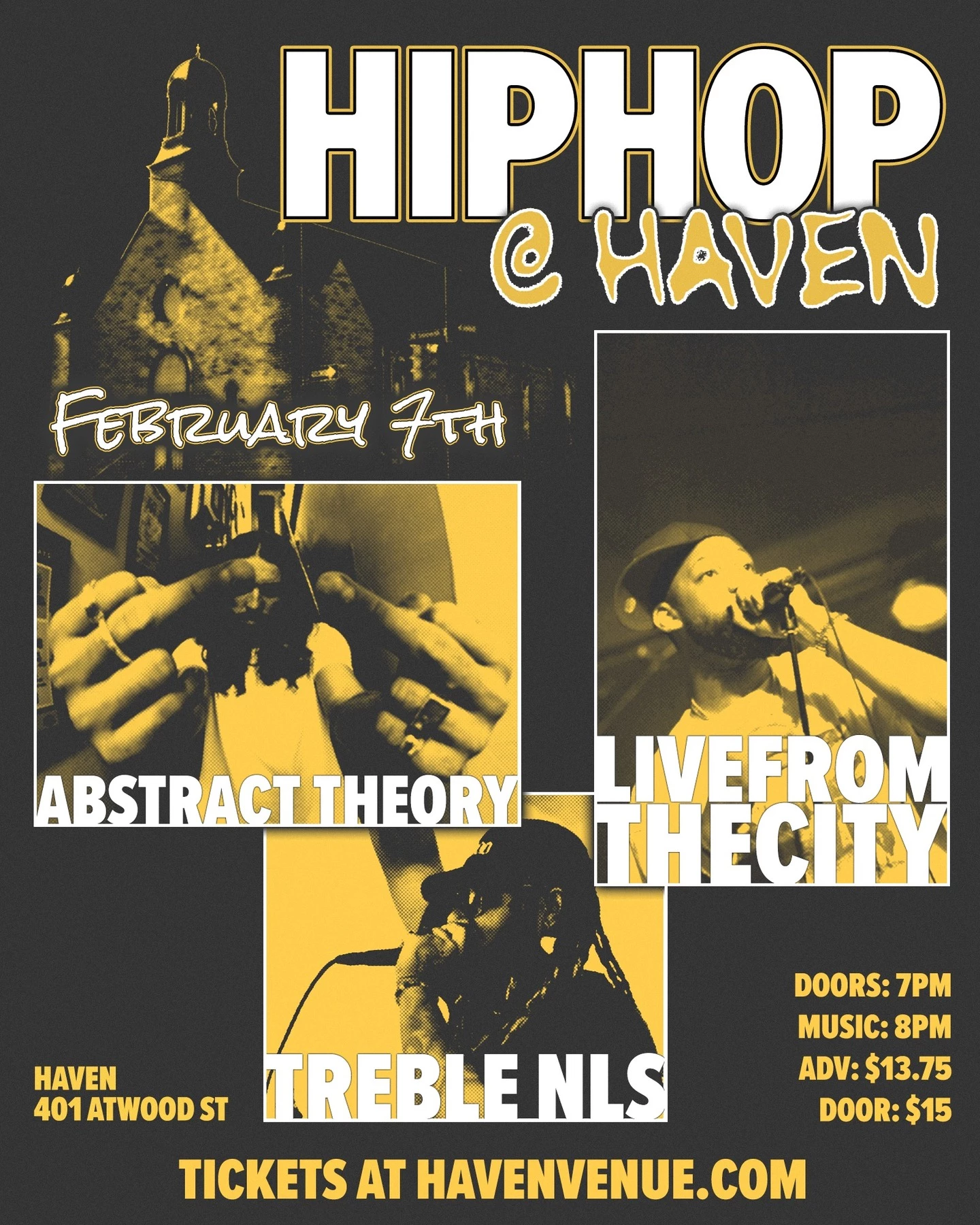 Live hip-hop showcase with Treble NLS, Livefromthecity, and Abstract Theory.Concert by Haven
