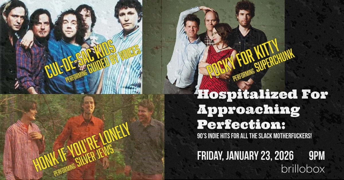 90s indie tribute night featuring Guided By Voices, Superchunk & Silver Jews tributes.Concert