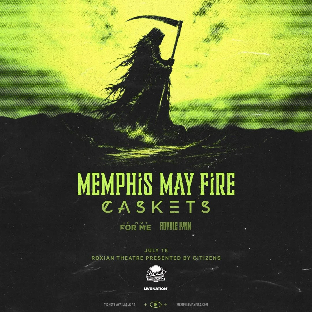 Memphis May Fire with Caskets, If Not For Me, and Royale Lynn Memphis May Fire headlines a heavy metal night at Roxian Theatre with support from Caskets, If Not For Me, and Royale Lynn. Concert Wednesday, July 15, 2026 at 7:00 PM Roxian Theater All Ages Drusky Entertainment Roxian Theater Metalcore