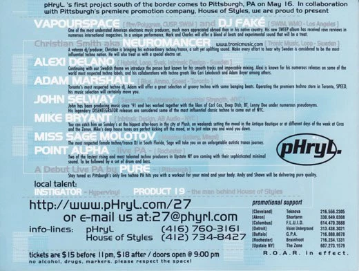 Info lines: Phryl (416) 760-3161 / House of Styles (412) 734-8427