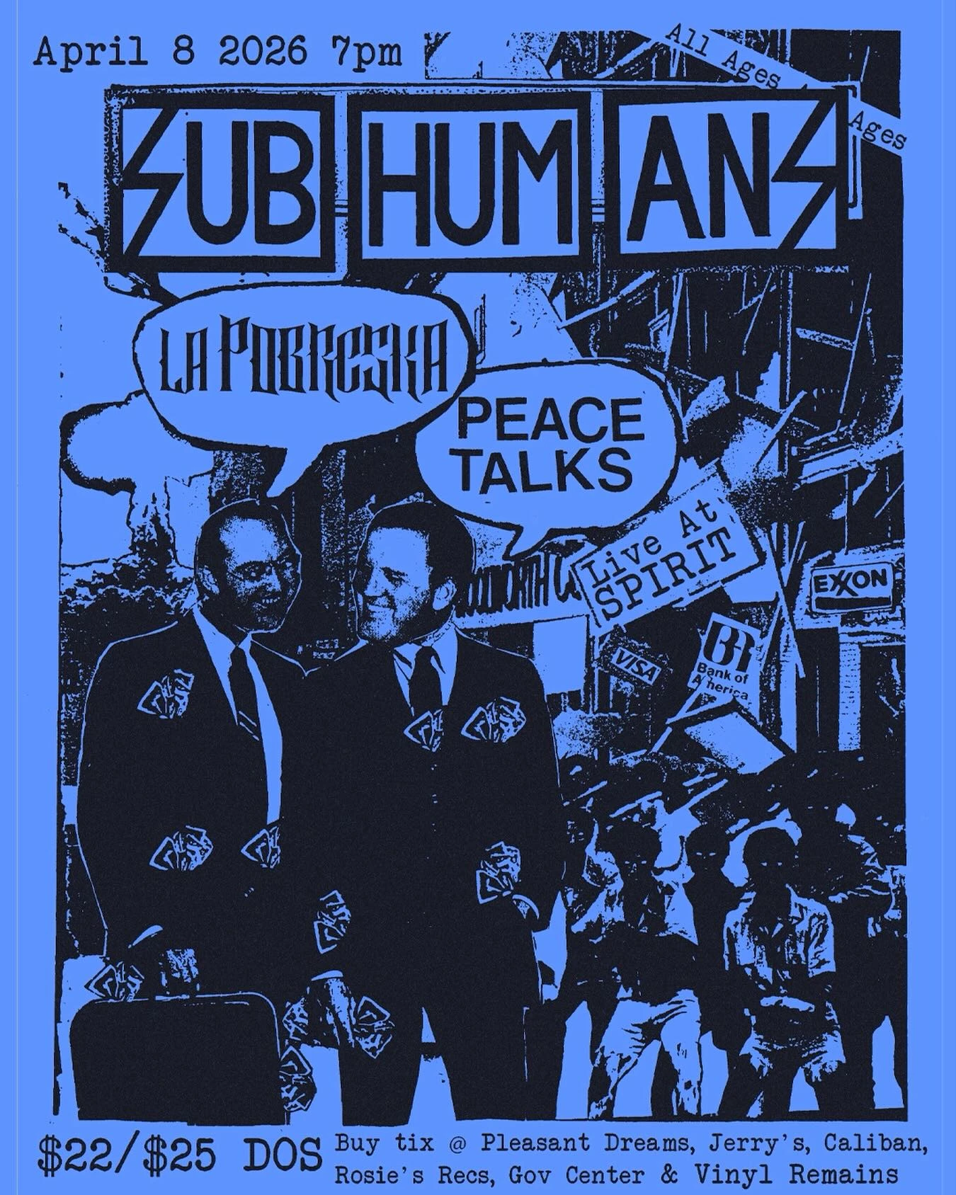 UK anarcho-punk legends Subhumans live at Spirit with La Población and Peace Talks.Concert