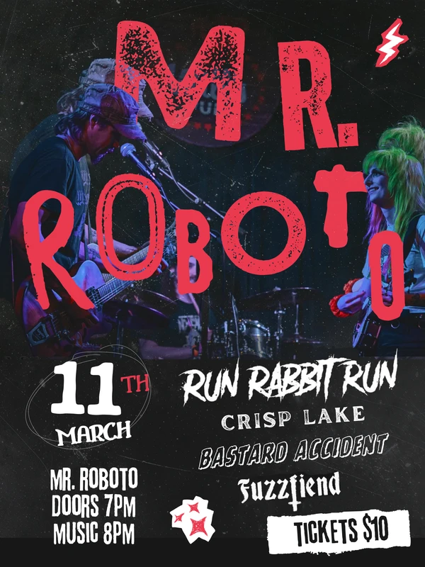 Run Rabbit Run, Crisp Lake, Bastard Accident, Fuzzfiend 5106 Penn Avenue, Pittsburgh, PA 15224 Concert Wednesday, March 11, 2026 at 7:00 PM Roboto Project All Ages Door: $10 Roboto Project Doom Metal Folk Folk Punk Punk Sludge