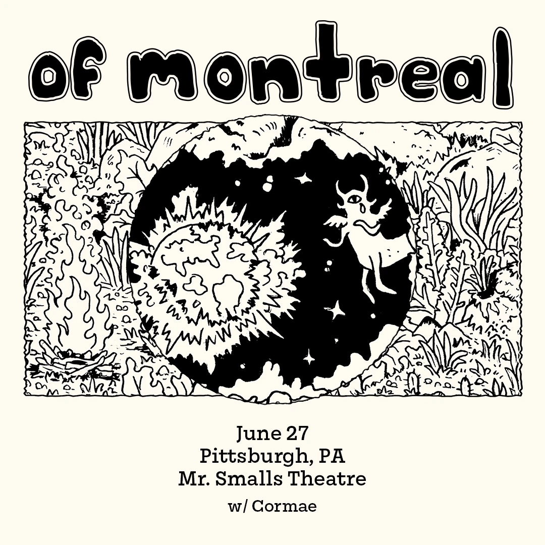 of Montreal w/ Cormae Indie pop icons of Montreal perform at Mr. Smalls Theatre with Cormae. Concert Saturday, June 27, 2026 at 7:00 PM Mr. Smalls All Ages Mr. Smalls Alternative Indie Indiepop Psychedelic
