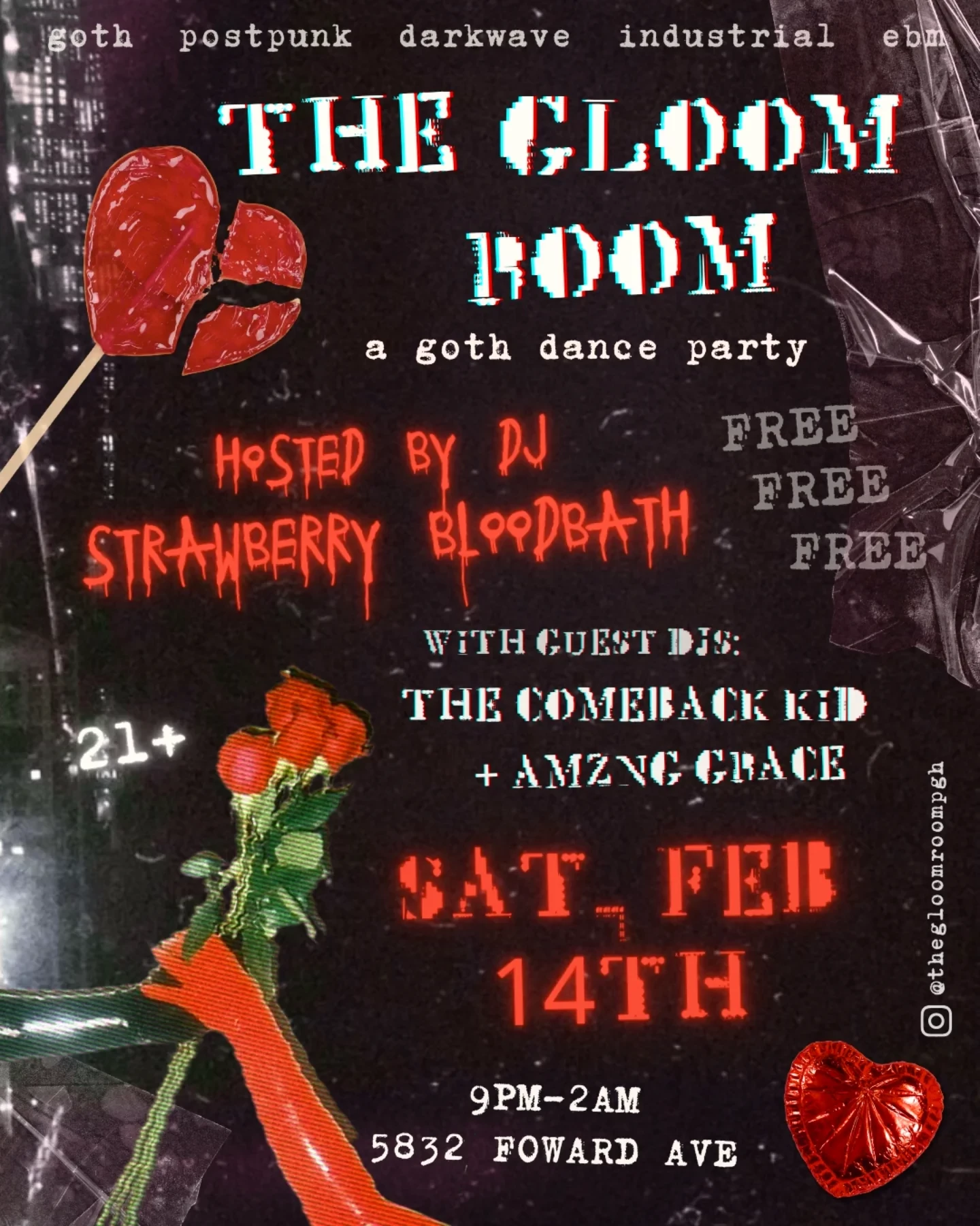 Valentine's goth dance party hosted by DJ Strawberry Bloodbath with guest DJs The Comeback Kid & Amzng Grace.Club Night