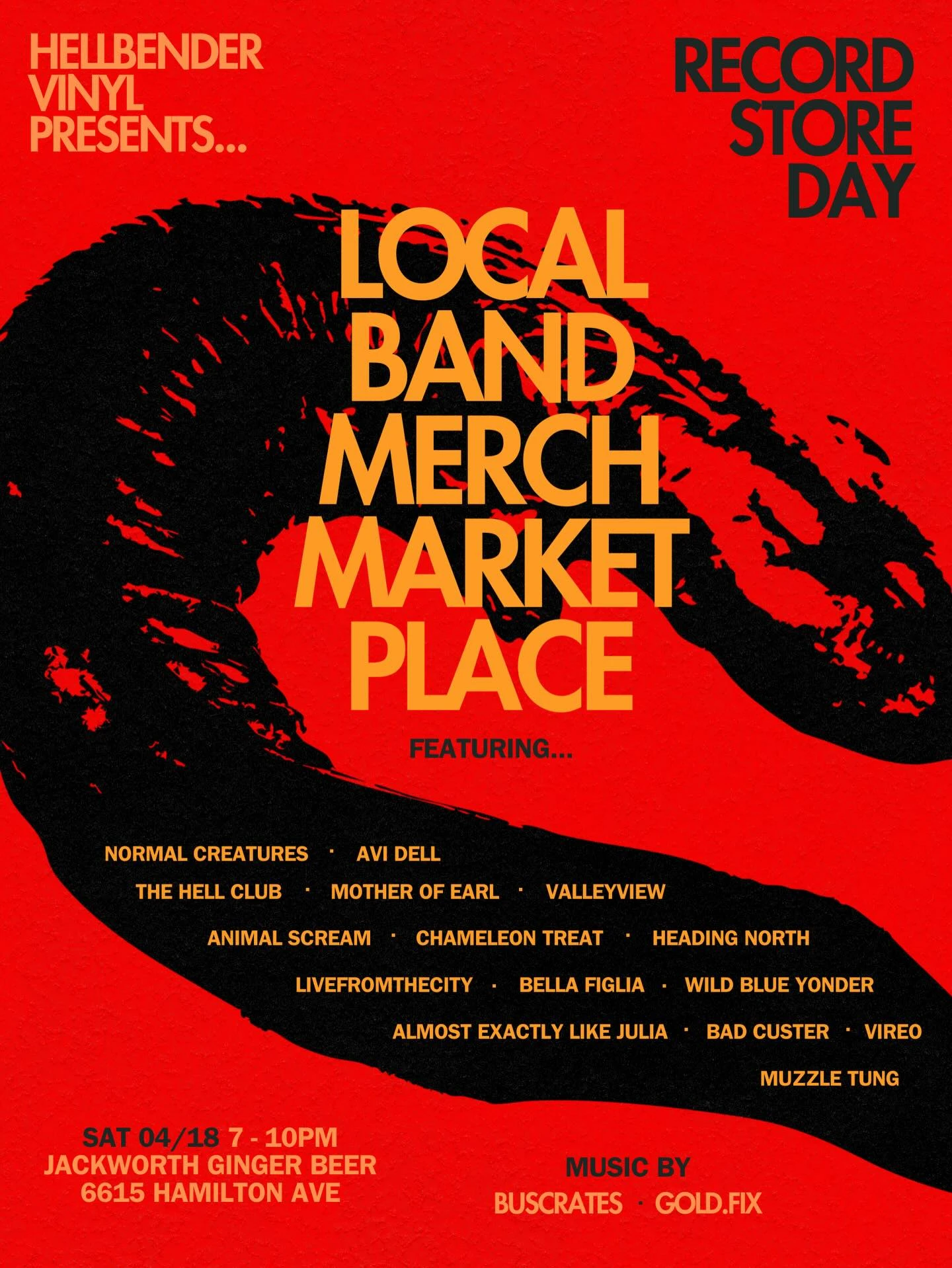 Record Store Day local band merch market with DJs Buscrates and Gold.Fix.
