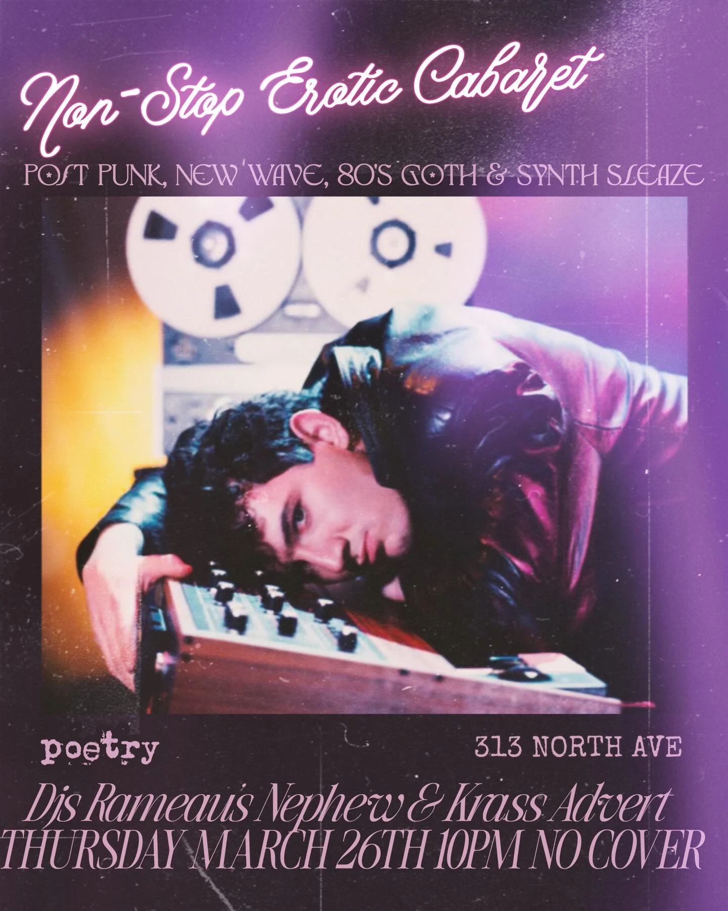Post-punk, new wave, goth and synth sleaze DJ night at Poetry Lounge.