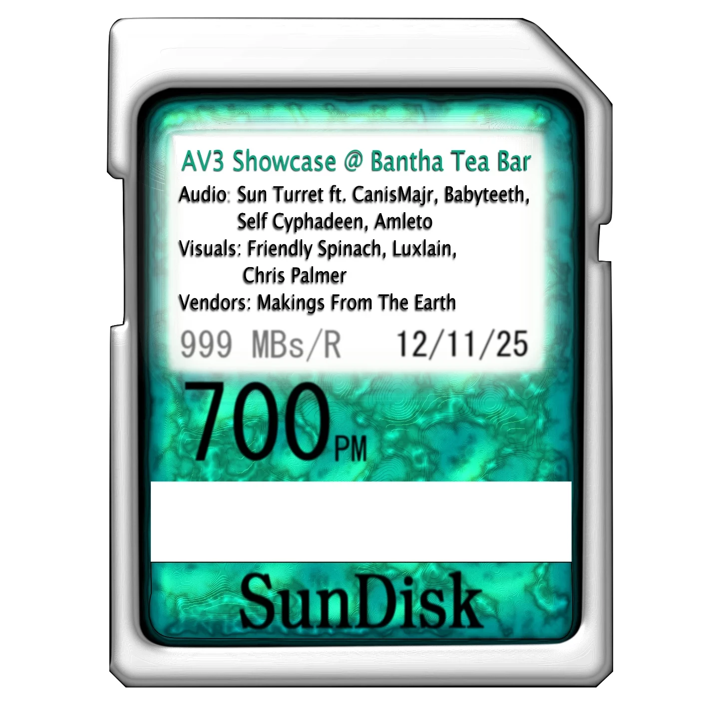 AV3 at Bantha Tea Bar featuring music, visuals, and vendors. Concert at Bantha Tea Bar All Ages -
