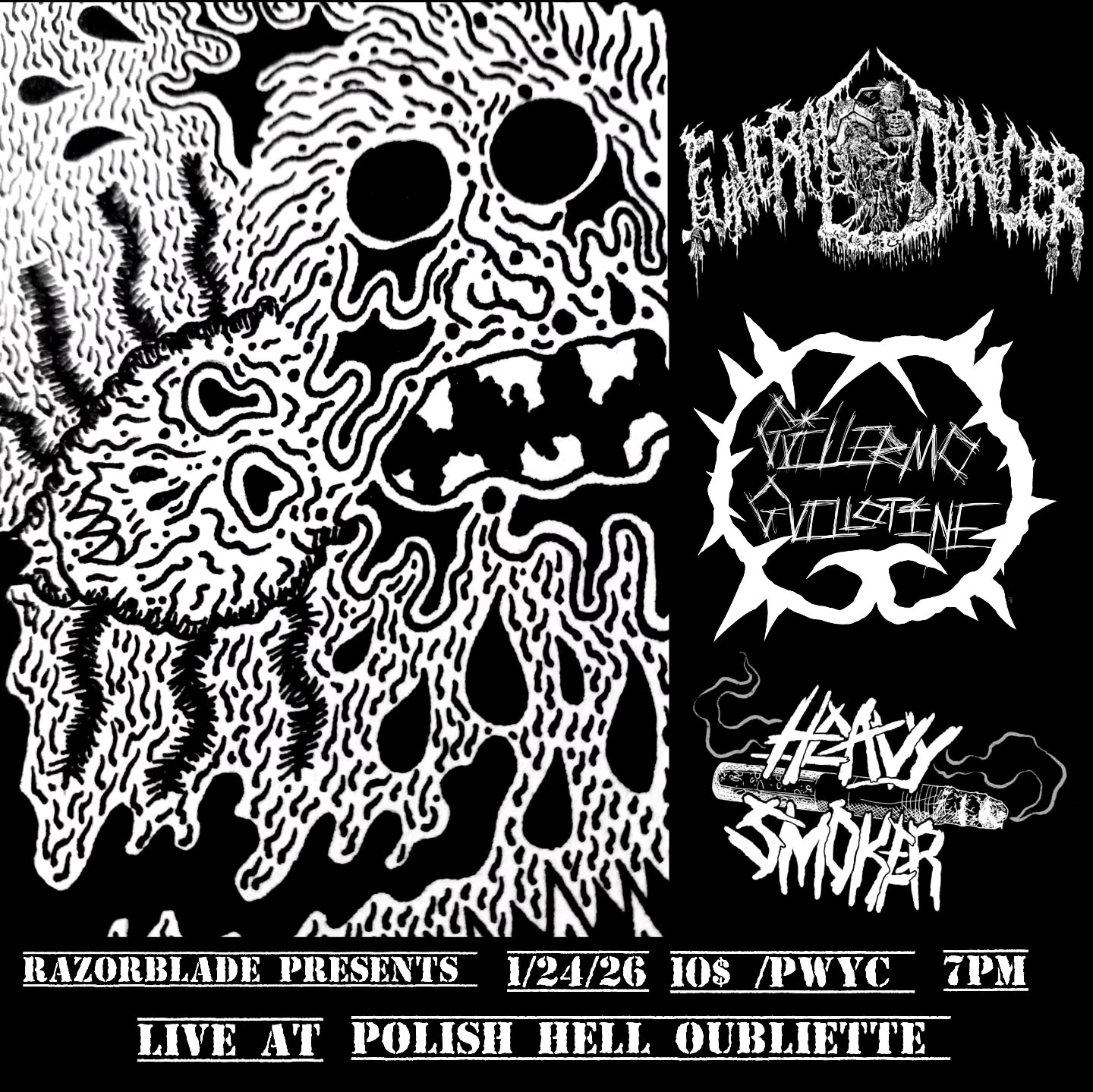 Razorblade Presents: Funeral Dancer, Guillermo Guillotine, and Heavy Smoker at Polish Hell Oubliette. Concert at Polish Hell Oubliette All Ages $10 / $10Guillermo Guillotine Heavy Smoker Razorblade Polish Hell Oubliette Metal Hardcore Punk
