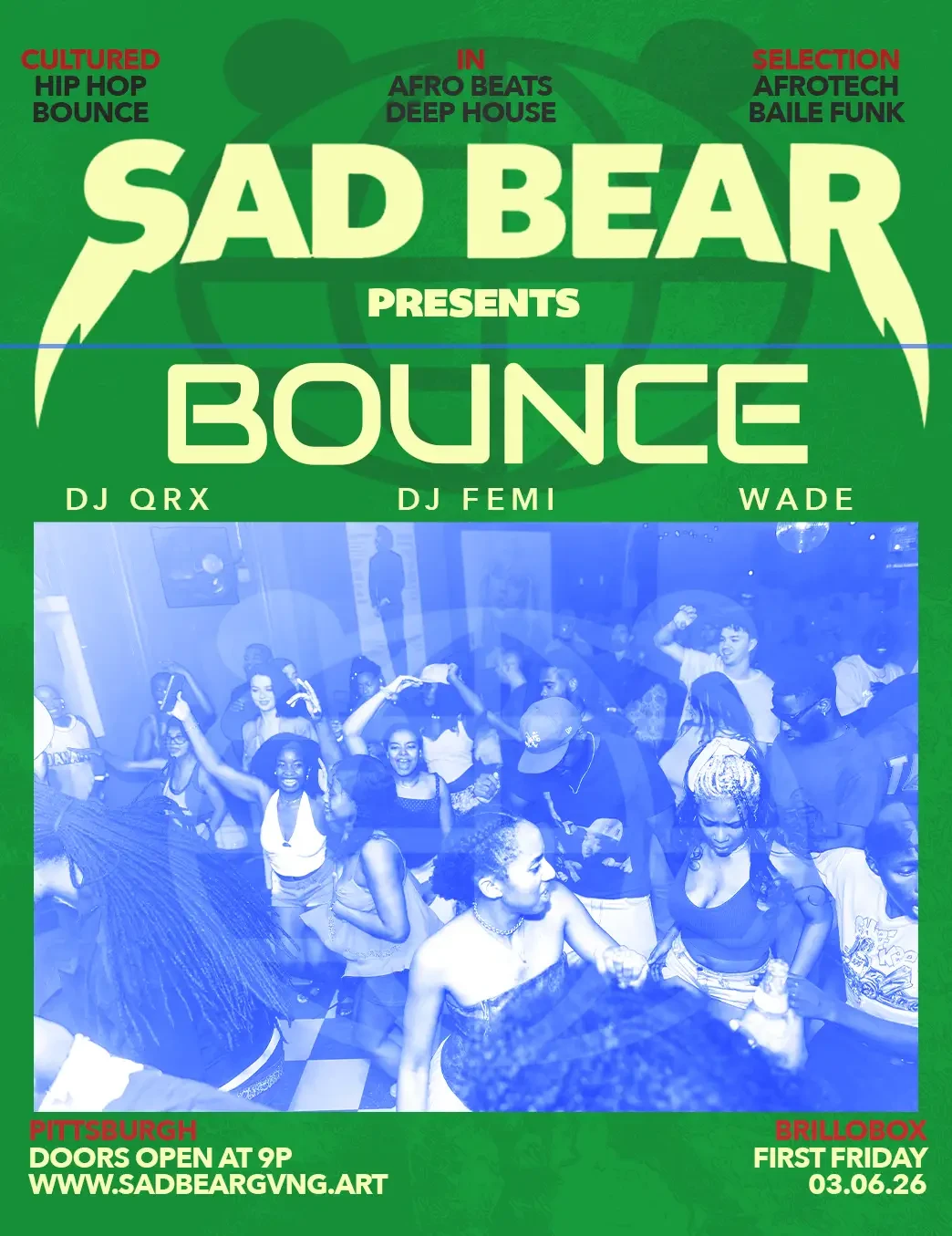 Afrobeats, deep house, afrotech and baile funk dance party at Brillobox.