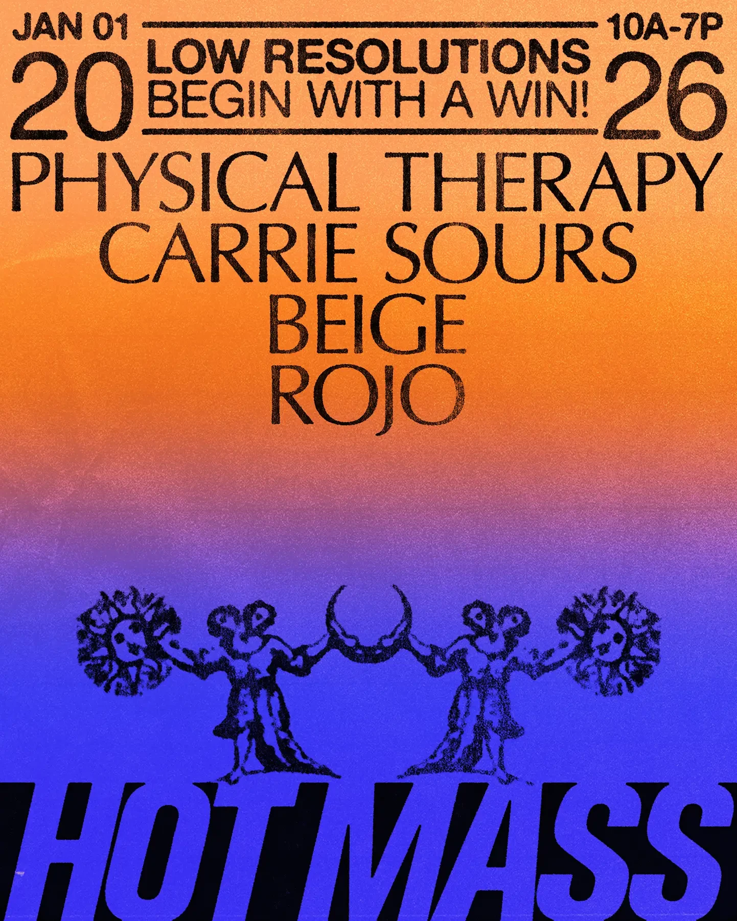 Hot Mass opens 2026 with Physical Therapy, Carrie Sours, Beige, and Rojo. Club Night at New Hot Mass 21+ -