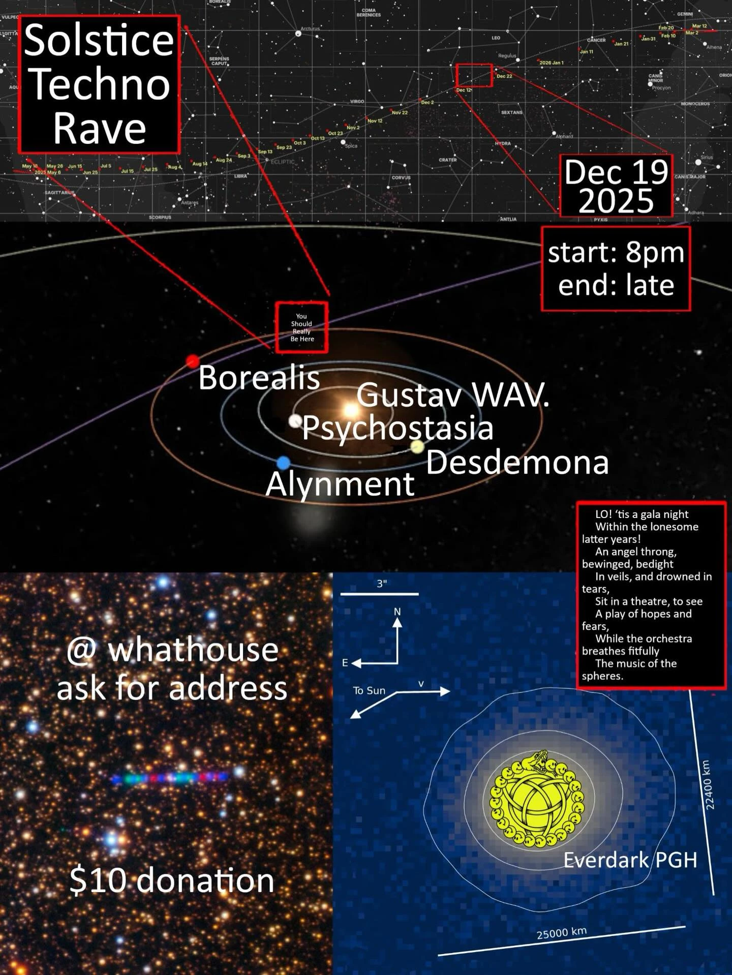 Underground solstice techno rave presented by Everdark PGH. Pop-up no venue specified All Ages $10 -