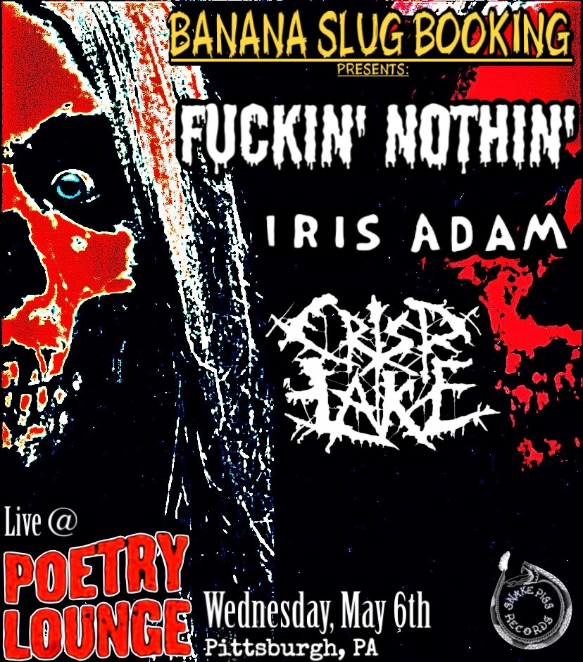 Fuckin' Nothin' / Iris Adam / Crisp Lake 313 North Ave, Pittsburgh, PA 15209 Concert Tuesday, May 6, 2025 at 7:00 PM - 10:00 PM Poetry Lounge All Ages Door: $10 Poetry Lounge Folk Punk Hardcore Metal Punk