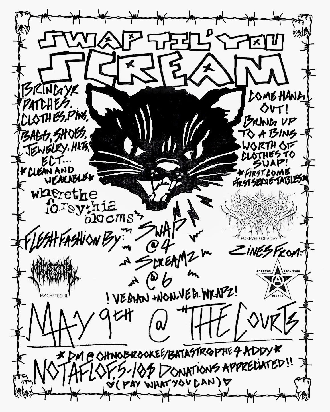SWAP TIL YOU SCREAM alternative clothing swap with local bands @foreverforadaypgh @wheretheforsythiablooms and special guest art vendor @machete.girl at the courts! Concert Saturday, May 9, 2026 at 4:00 PM The Courts All Ages Door: $5 The Courts Emo Live Music