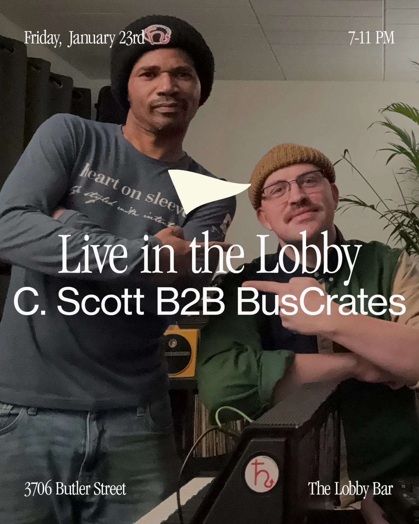 7:00 PM - 11:00 PMLive in the Lobby: C. Scott B2B Buscrates