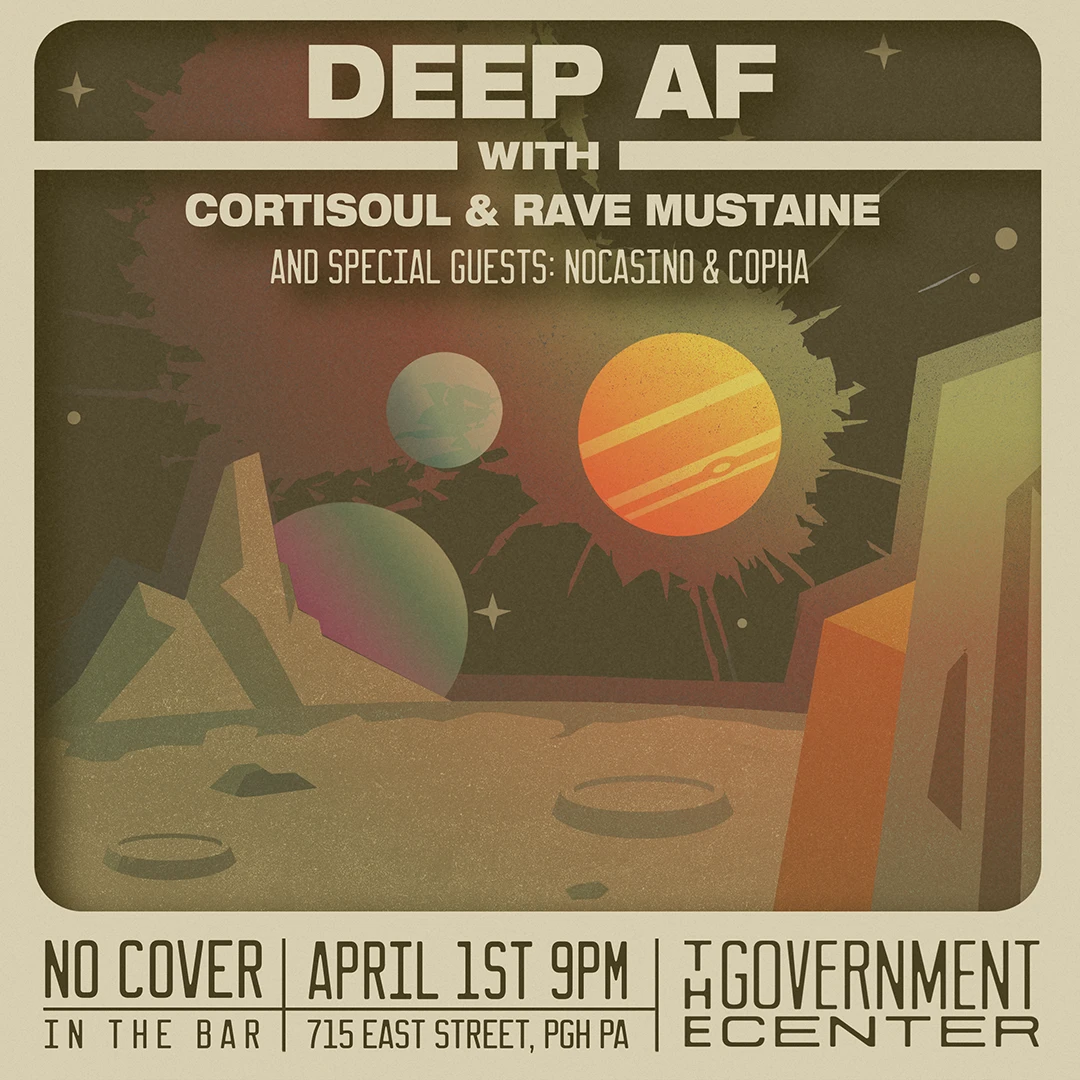 Deep AF with Cortisoul & Rave Mustaine A Celebration of Deep House Jams - First Weds of the Month! Club Night Wednesday, April 1, 2026 at 9:00 PM - 2:00 AM The Government Center 21+ Copha Nocasino Rave Mustaine +1 more Deep House House Part of Deep AF w/ Rave Mustaine